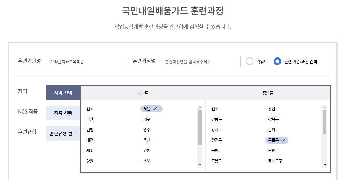 발급 후에는 HRD-Net에서 원하는 훈련과정을 선택하셔서 수강신청 하시면 됩니다.