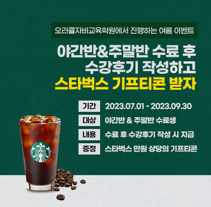 수강후기 작성시 소정의 스타벅스 기프티콘을 100% 지급해 드립니다.