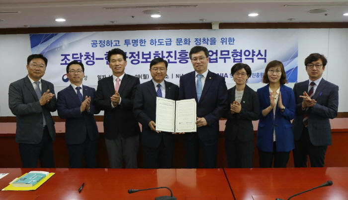 이번 협약을 계기로 한국정보화진흥원이 연간 체결하는 정보통신(IT)사업에 대해 조달청이 운영하는 하도급지킴이 시스템 도입을 적극 추진하게 된다.