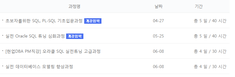 재직자분들뿐아니라 구직자 오라클기초자분들도 주말반 수업을 통하여 오라클교육을 들을 수 있습니다.