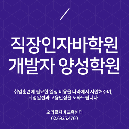 | 오라클자바교육센터::자바직장인 국비지원 교육과정 (0) | 2021.02.15 |