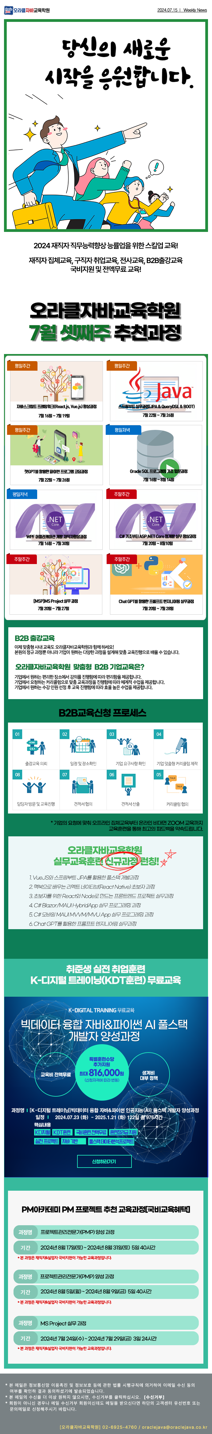it교육알리미 [코딩입문] 웹개발 입문자를 위한 커리큘럼 추천! 행복한짱짱이 2024. 7. 15. 09:20 www.oraclejava.co.kr 오라클자바교육학원 20 7월 아이폰 iOS App 개발 with 스위프트(swift) … 7월 20일(토) ~ 7월 28일(일) 과정 바로가기 www.oraclejava.co.kr 저작자표시 (새창열림)